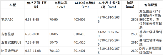 現(xiàn)在 10 萬級純電 SUV 市場的主力選手就是比亞迪元 UP 和吉利星愿,我把三臺車主核心參數(shù)給大家列出來,一目了然:這么對比下來就很清楚了:零跑 A10 比吉利星愿便宜 1 萬多,比比亞迪元 UP 便宜 3 萬多,但是配置反而更高,尤其是智能化配置,直接比對手高了一個量級,性價比確實是獨一檔的存在。就像媒體說的那樣:"10 萬級的價格,敢對標 20 萬級的智能化配置",真不是吹的。