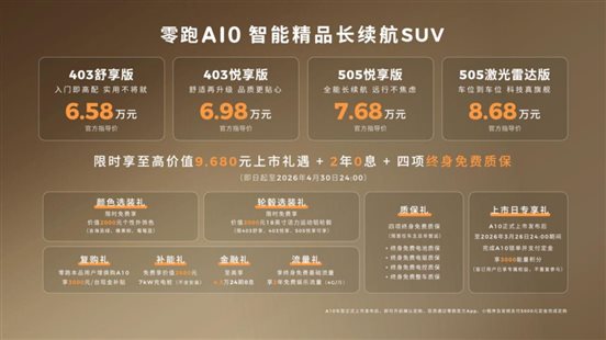 以前總有人說 "代步車不需要配置,能開就行",但零跑 A10 告訴我們:代步車也能不將就。6 萬多的價格,能給你大空間、長續(xù)航、流暢的車機、甚至9萬不到還有激光雷達智駕,對于預(yù)算 10 萬以內(nèi)想買純電 SUV 的用戶來說,這臺車真的是繞不開的選項。